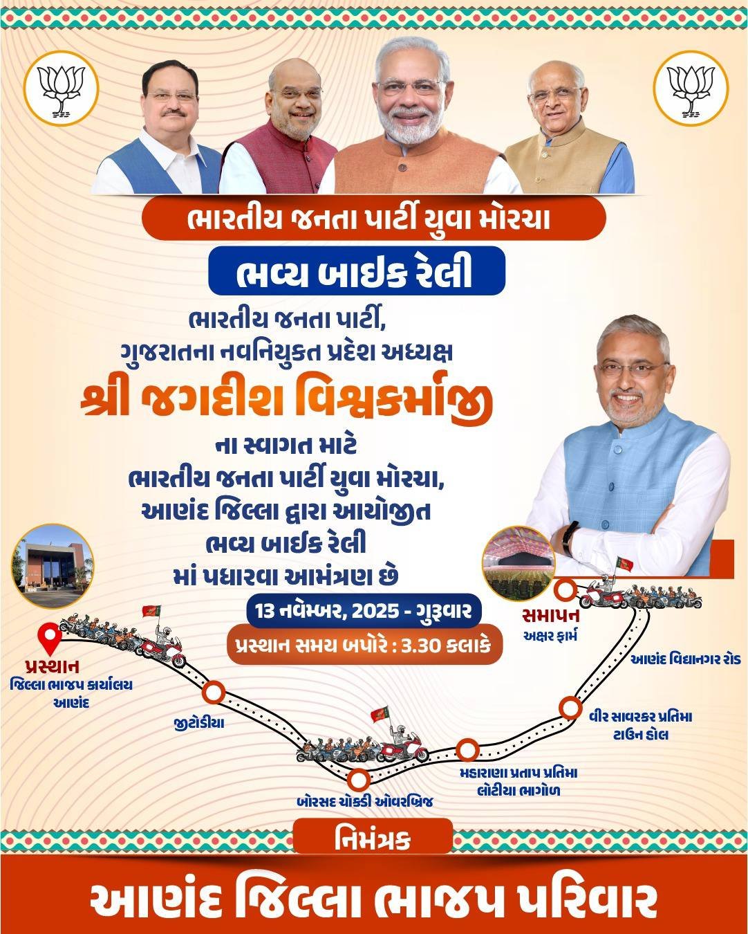 Anand Set to Host a Grand Felicitation for State BJP President Shri Jagdish Vishwakarma at Akshar Farm