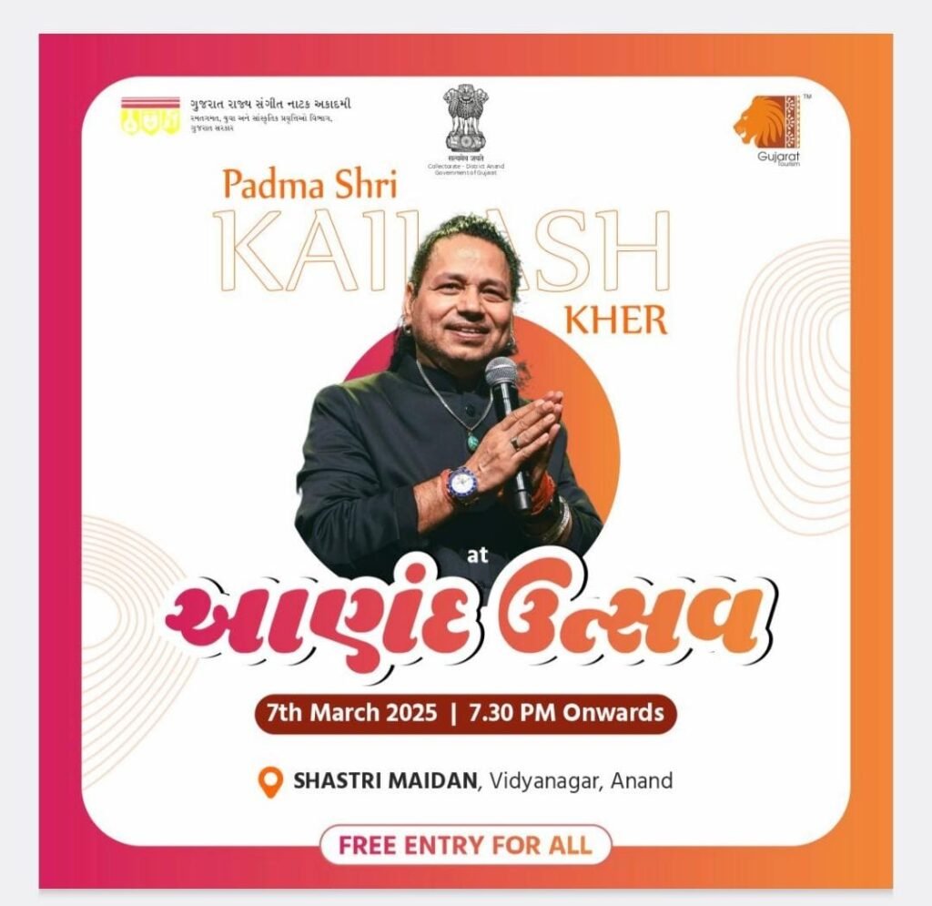 Anand: The much-celebrated “Anand Utsav” was successfully organized by the Gujarat Tourism Corporation, Gujarat State Sangeet Natak Academy, and Anand District Administration at Shastri Ground, Vidyanagar. The festival brought together a diverse crowd, celebrating Gujarat’s rich cultural heritage and artistic excellence.