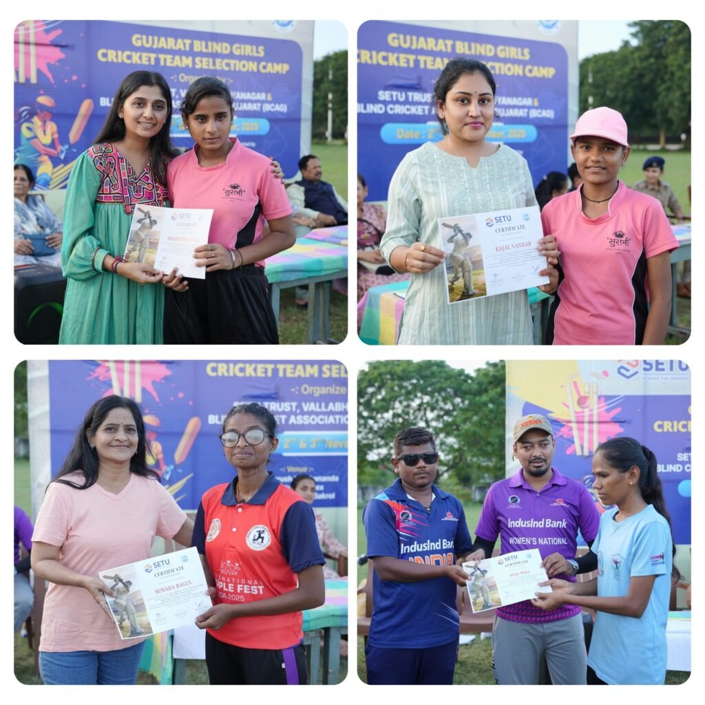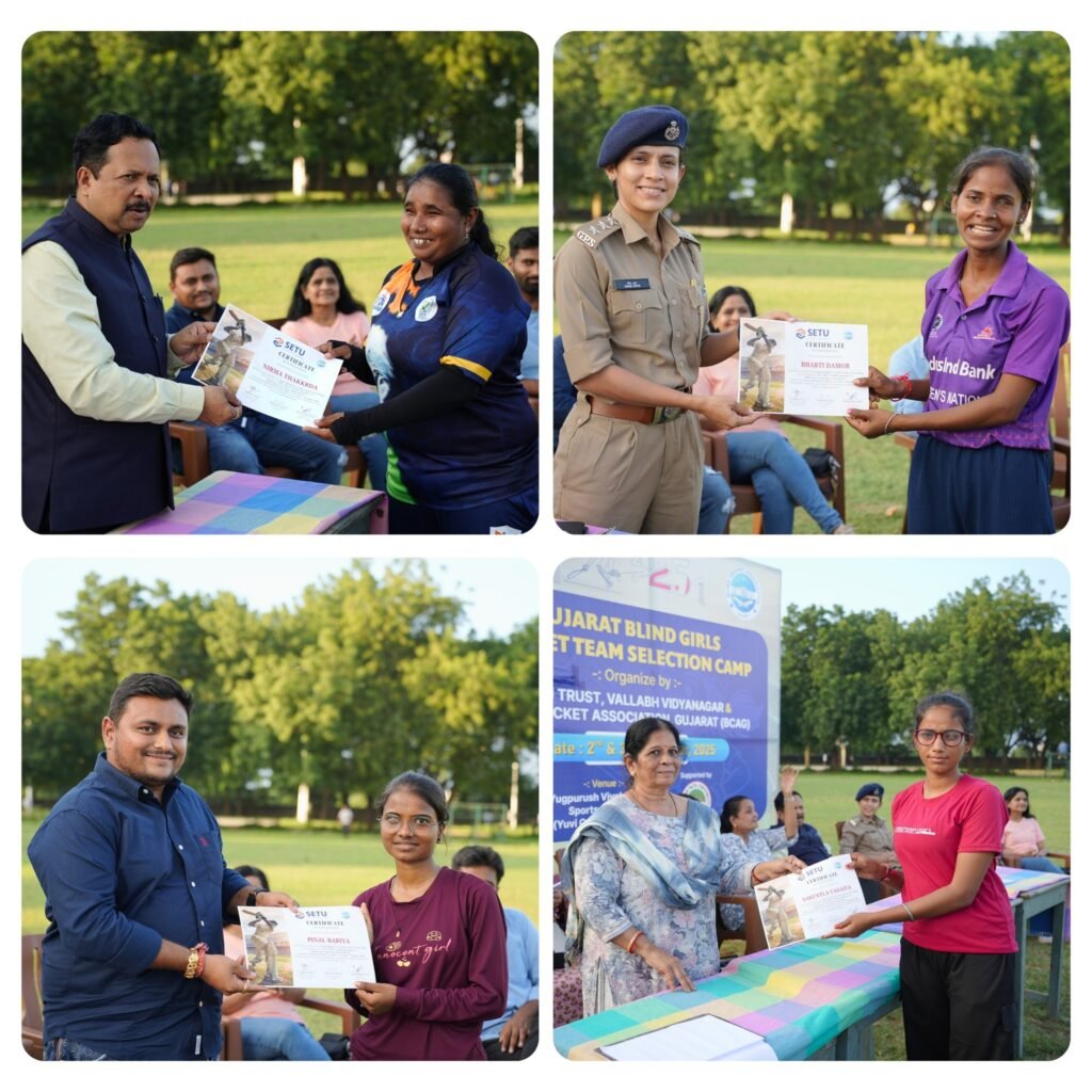 Vallabh Vidyanagar: A two-day Gujarat Blind Girls Cricket Team Selection Camp was successfully organized on 2nd  and 3rd  November 2025 by Setu Trust, Vallabh Vidyanagar, and the Blind Cricket Association, Gujarat, in collaboration with Sardar Patel University (SPU).